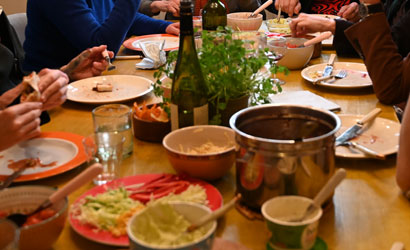 Feestelijk gevarieerde maaltijd met veel verschillende smaken: voor elk wat wils.